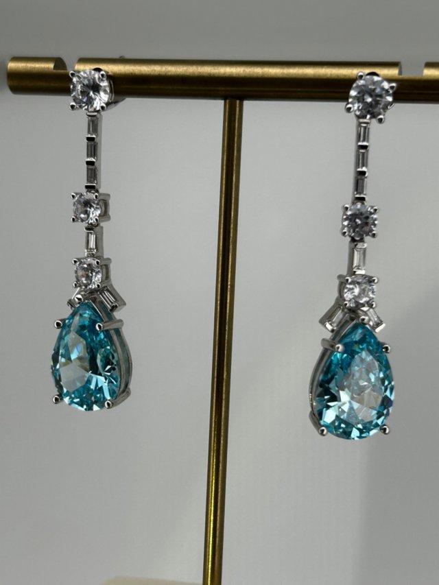 925純銀鍍金水滴形仿海藍寶鋯石耳環