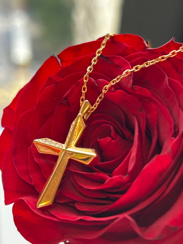 925純銀鍍玫瑰金十字架鋯石吊墜頸鏈