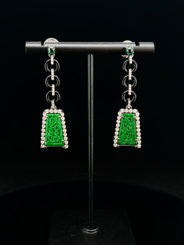 新中式天然翡翠耳墜