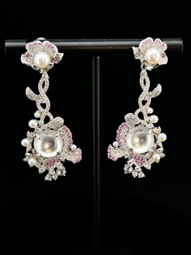 鑽石盾牌水沫玉耳釘