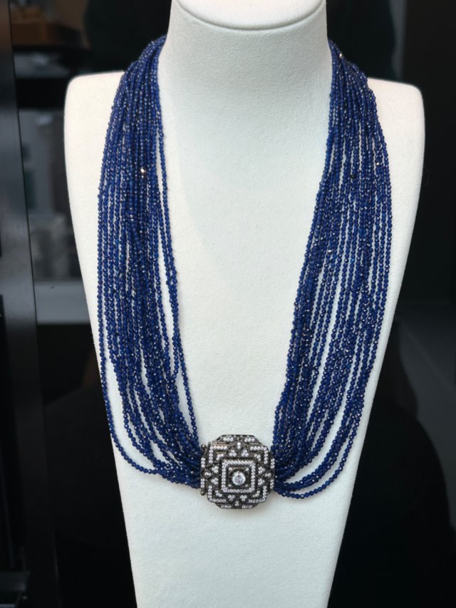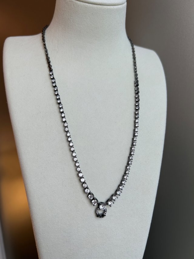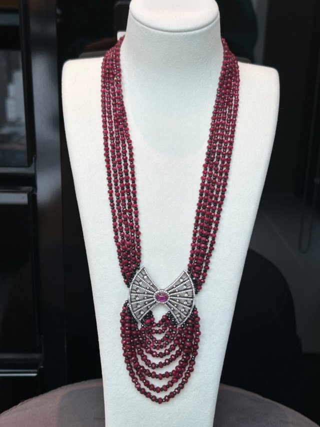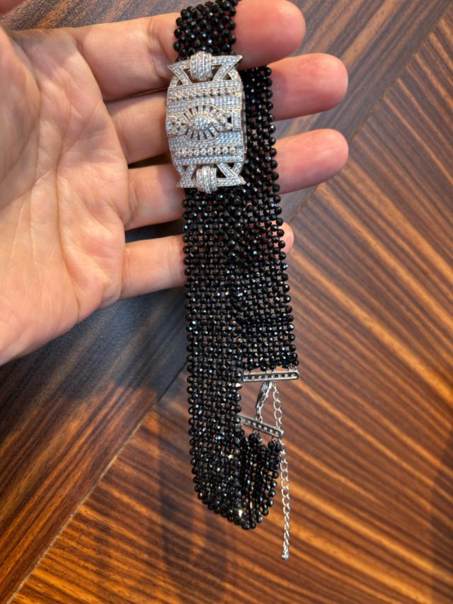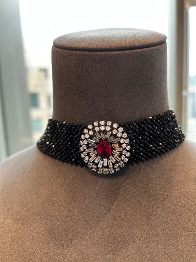 黑尖晶手工編織鋯石仿紅寶石頸鏈