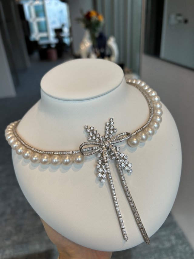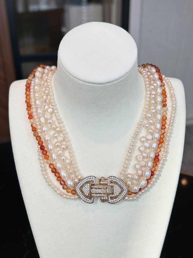淡水珍珠鋯石銅鍍玫瑰金頸環