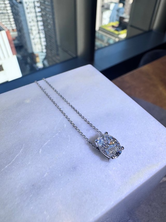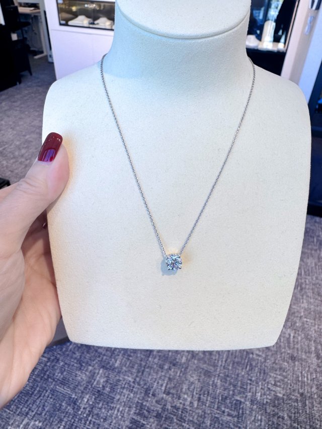 耀目圓形鑽石14K白金吊墜頸鏈 (IGI認證)