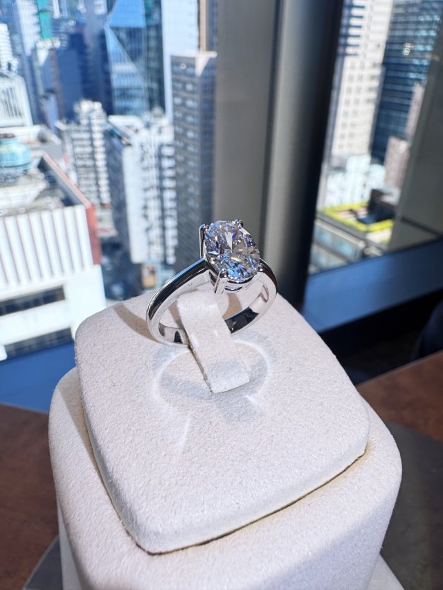 18K白金組合式橢圓形5.16卡鑽石戒指