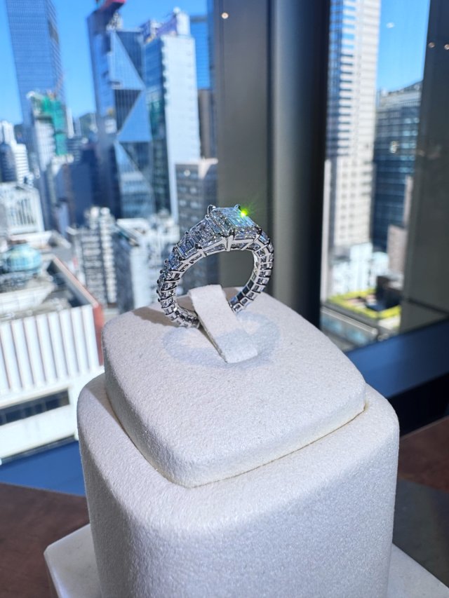 18K白金祖母綠切割12.16卡「F色」鑽戒 (IGI認證)