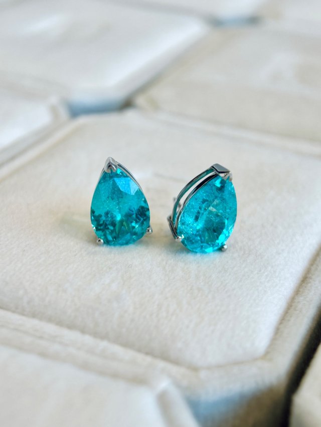 雷迪恩式 X 梨形 鑽石14K白金耳釘 (IGI認證)