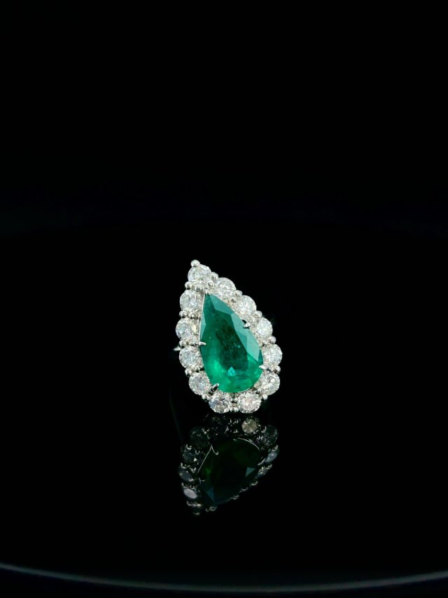 3.38卡哥倫比亞 Muzo 梨形天然祖母綠寶石戒指(GRS認證)