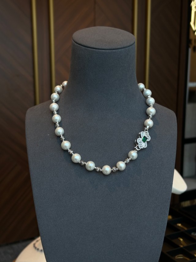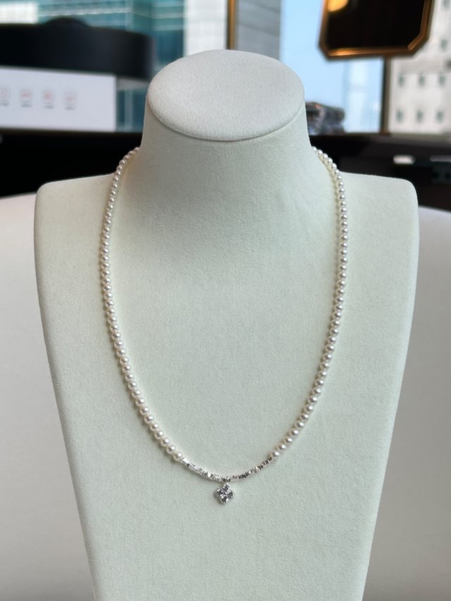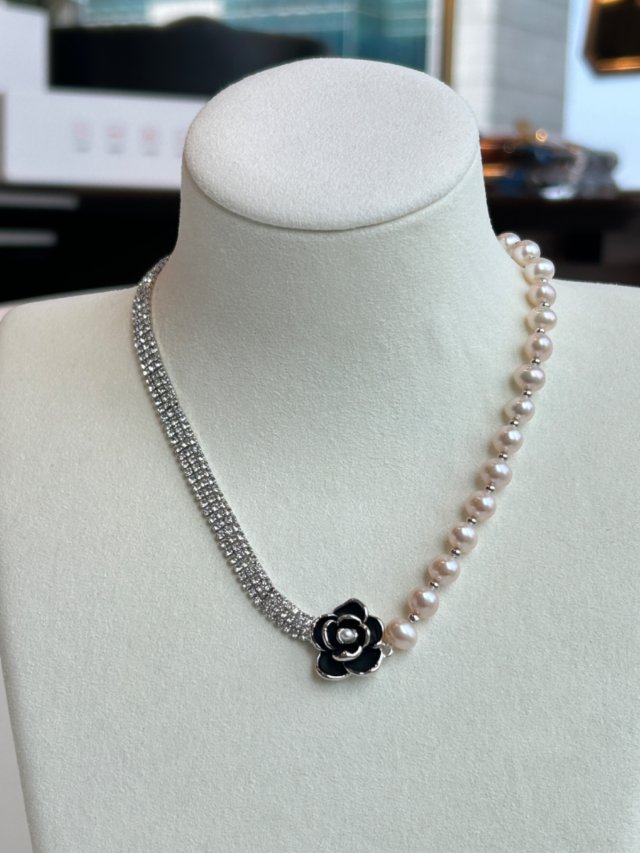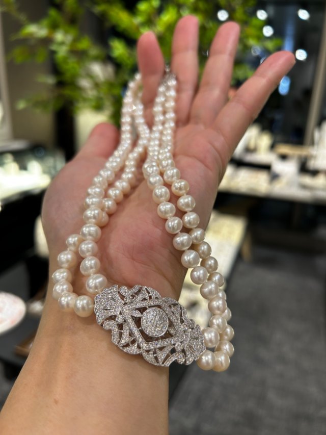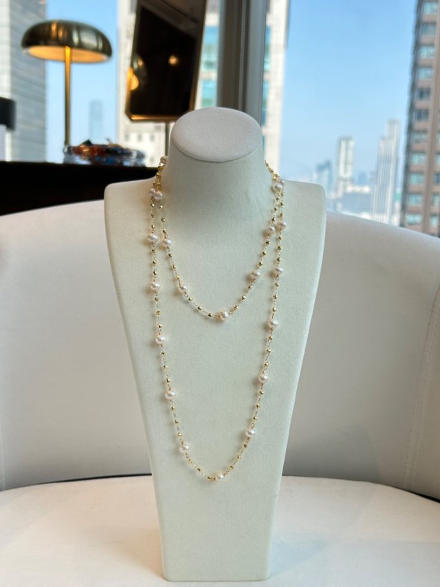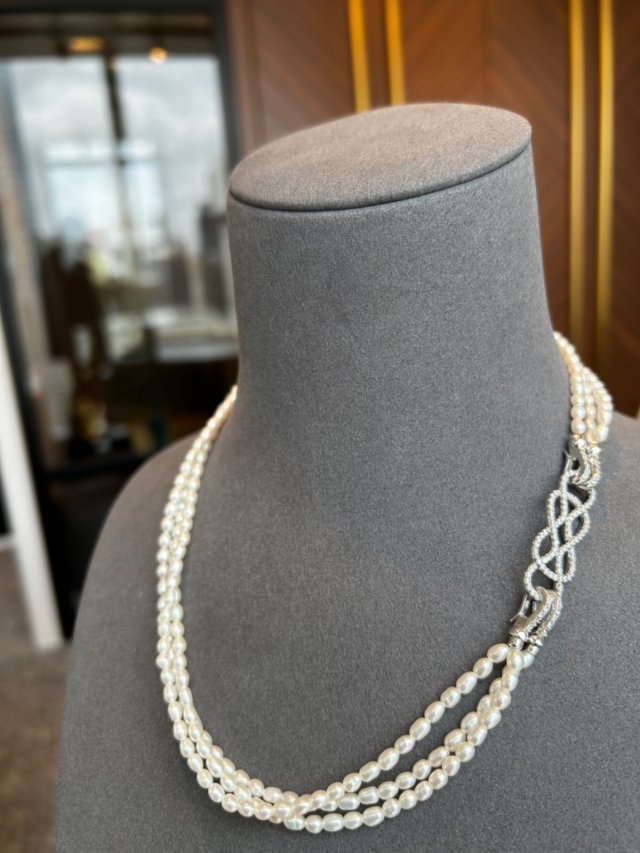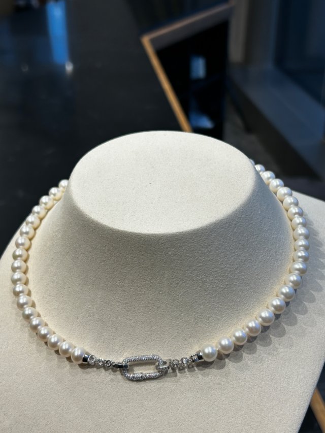 淡水珍珠鋯石銀扣多戴款頸鏈