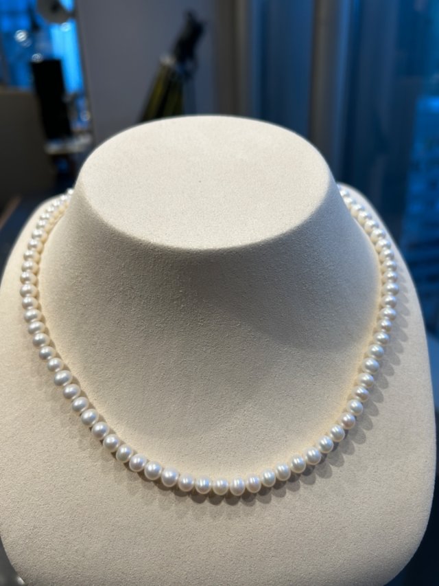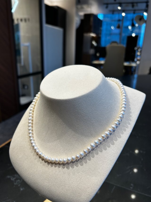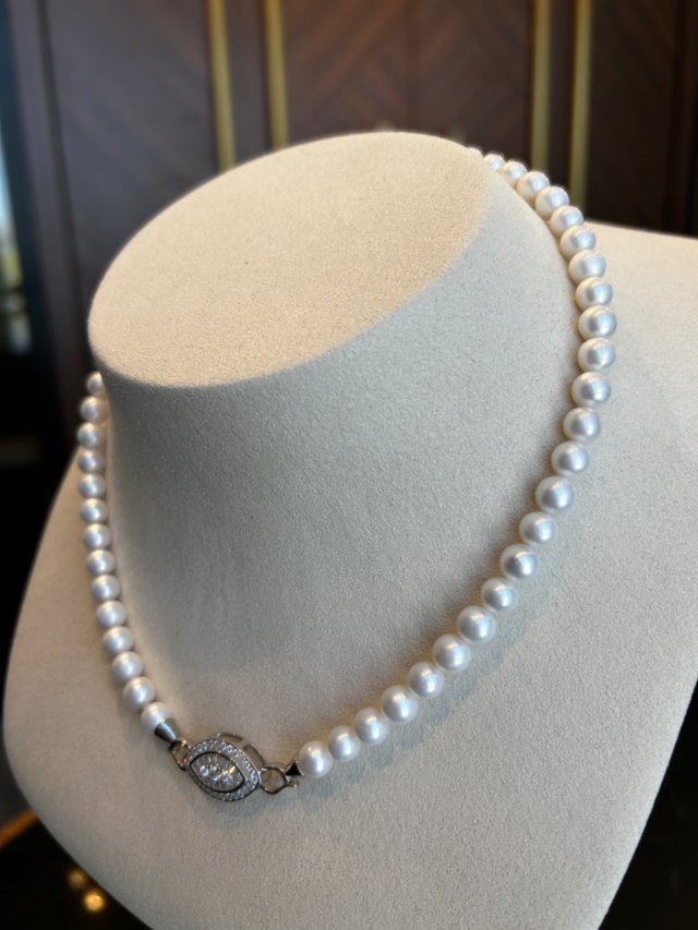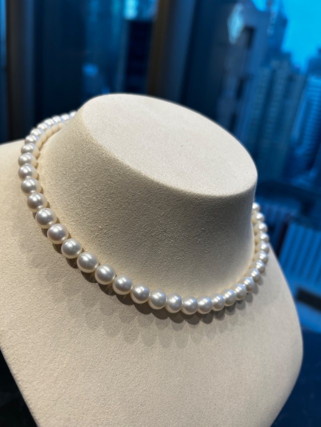 淡水珍珠銀扣頸鏈 (真綜研證書)