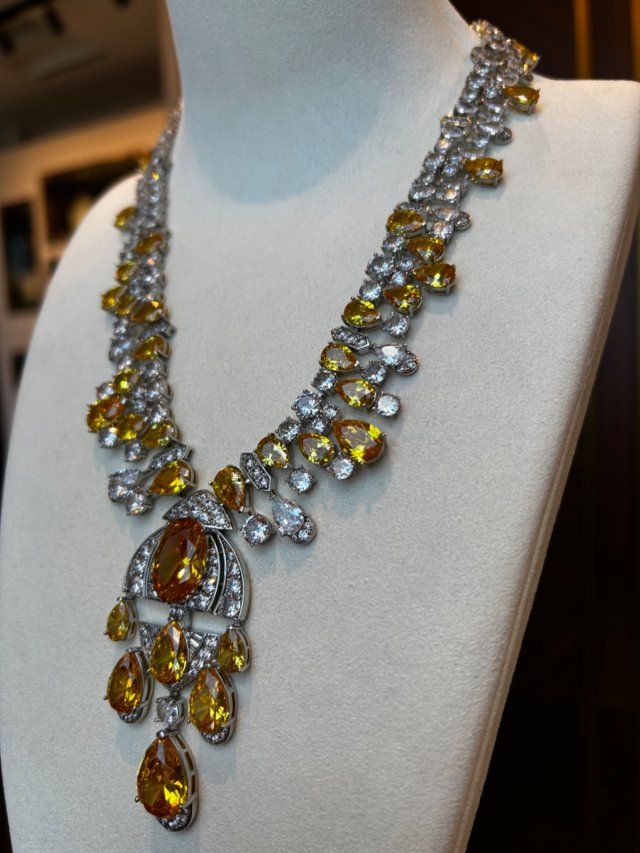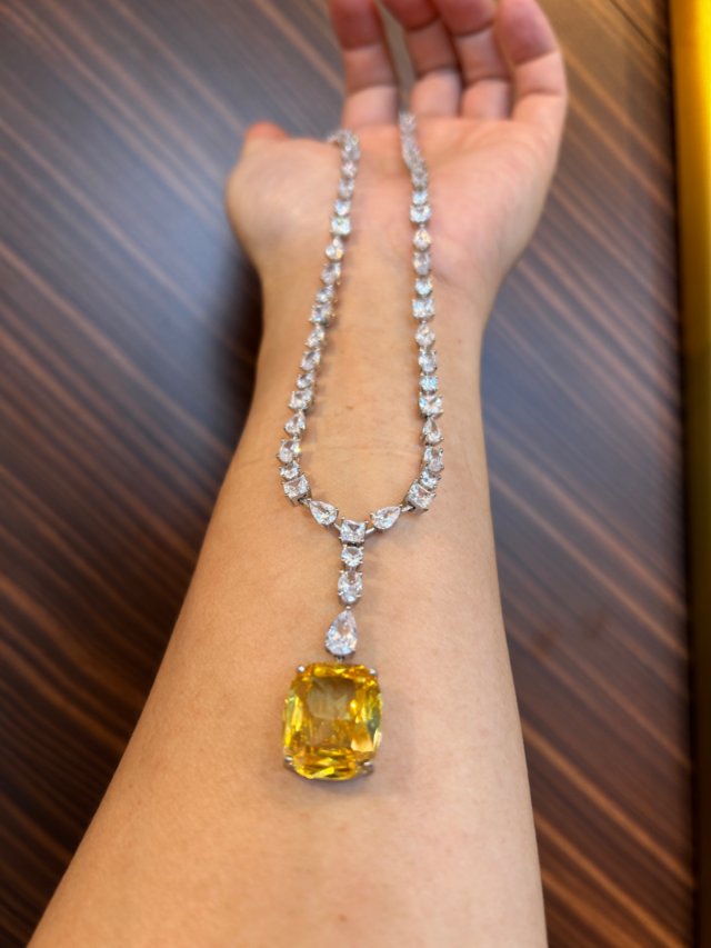 滿鑽仿黃鑽吊墜鋯石頸鏈