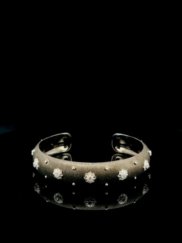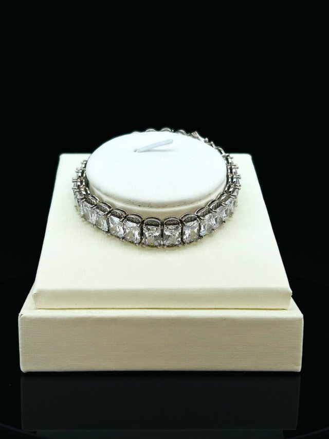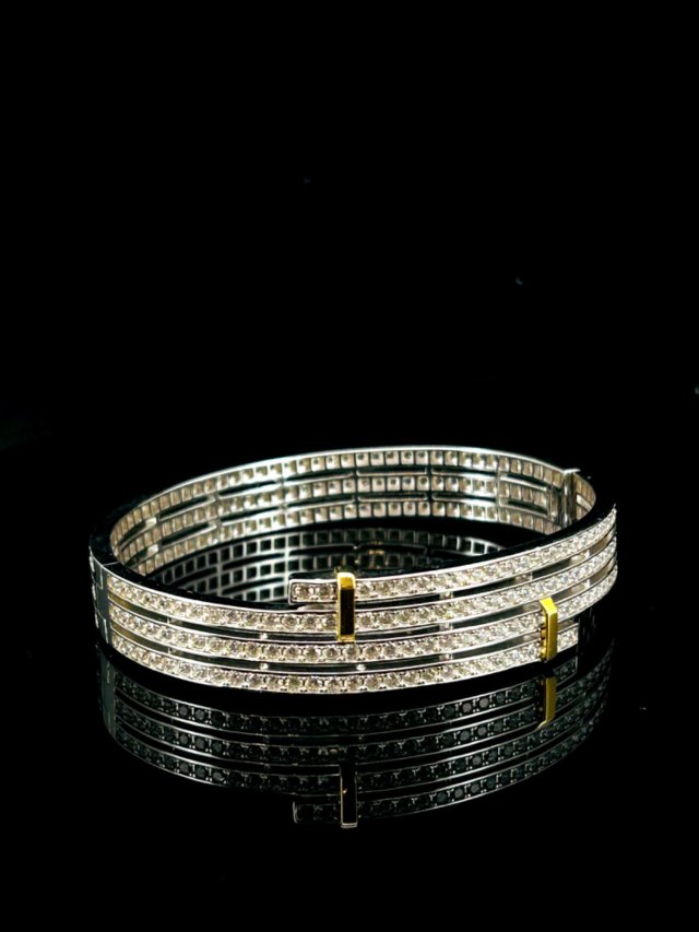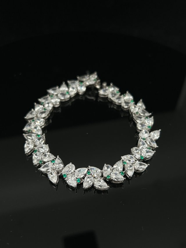 純銀鍍白金鋯石滿鑽花形三戴手環