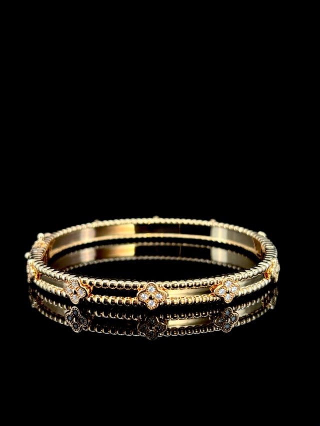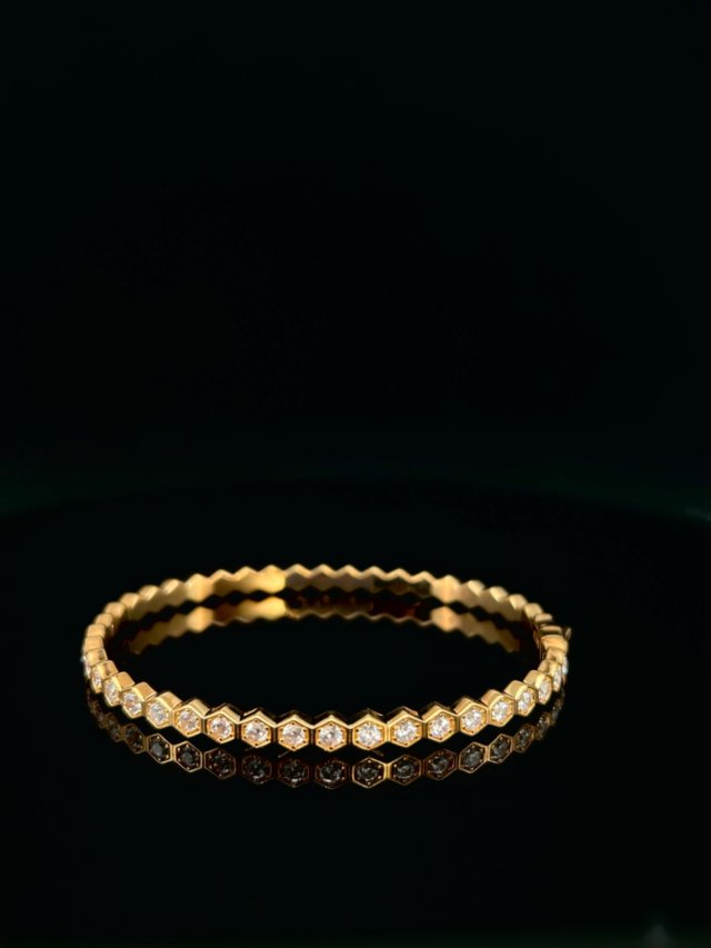 925純銀鍍玫瑰金鋯石鑲嵌手環