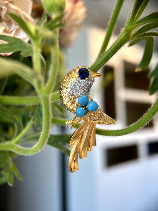 Vintage古董款小鳥綠松石胸針