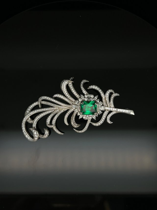 仿祖母綠羽毛形胸針吊墜