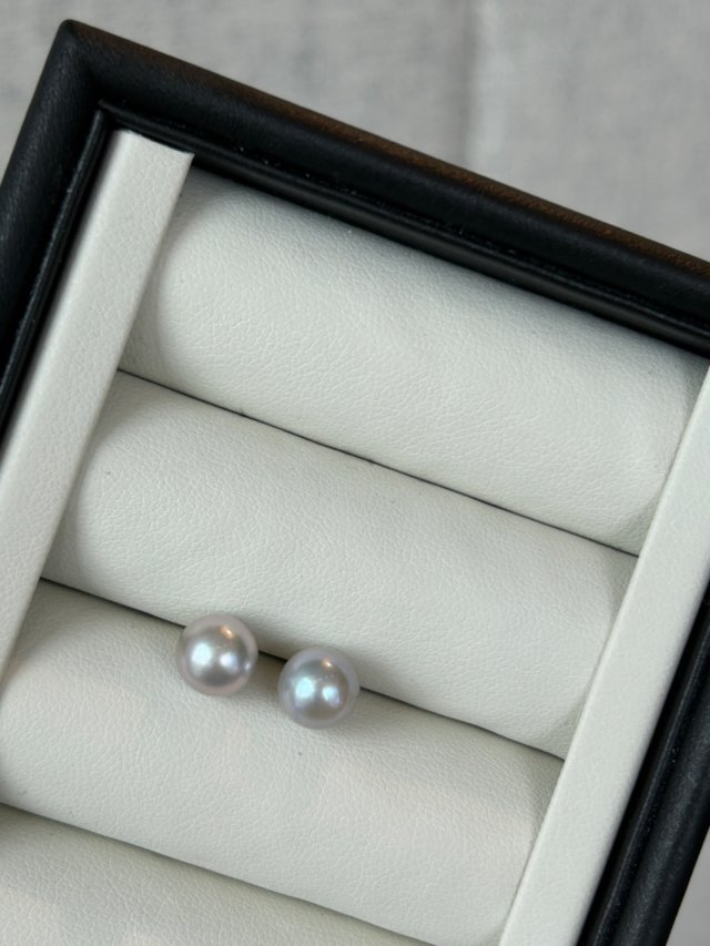18K 正圓 Akoya 海水珍珠耳釘