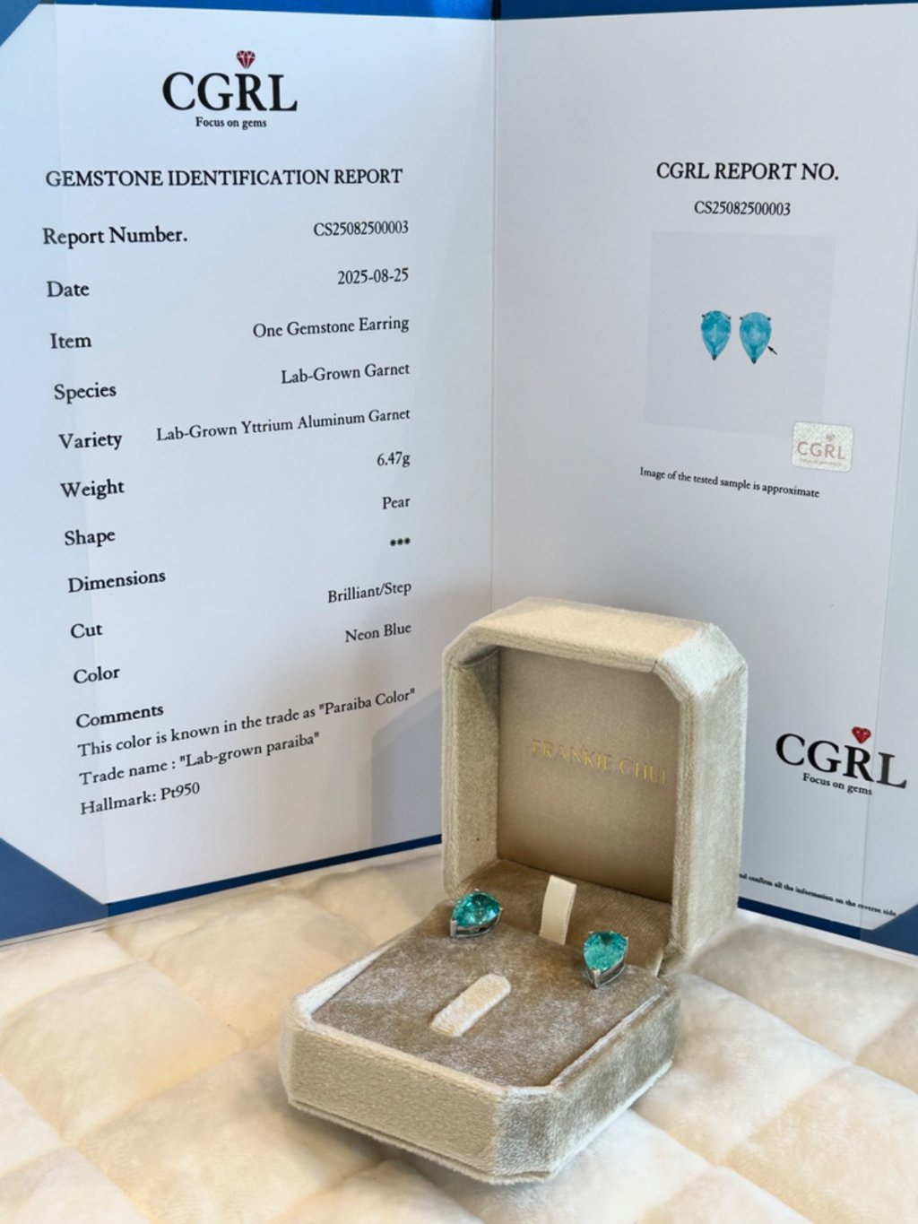 Lab Paraiba Earrings CGRL證書